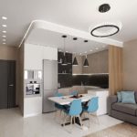 При необходимости разделить кухонное пространство на отдельные функциональные зоны, стоит обратить внимание на комбинированные конструкции, которые могут состоять из полотен разного цвета или фактуры. Если есть желание подчеркнуть неповторимость окружающего убранства, то оптимальным выбором станут многоуровневые потолки. В этом случае можно не только комбинировать полотна, но и создавать сложные по форме конструкции. Также можно установить натяжной потолок с фотопечатью, при создании которого открывается масса возможностей для воплощения фантазий.
