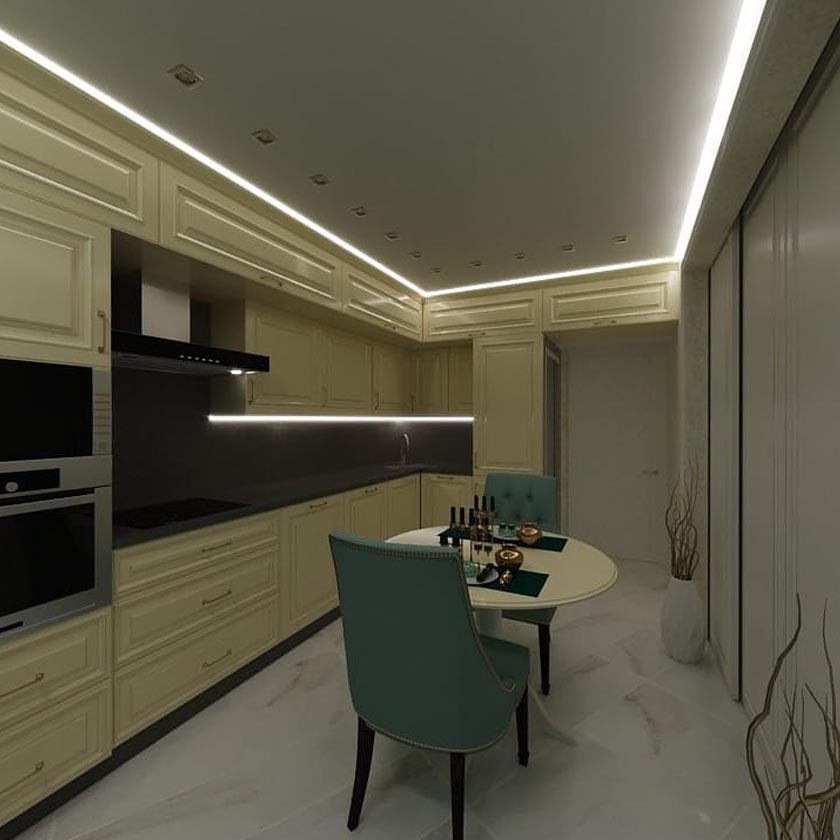 Кроме того, кухня, в отличие от жилых помещений, более подвержена риску затопления соседями с верхних этажей, а благодаря полной водонепроницаемости и прочности натяжных полотен, потолки могут удерживать до 100 л воды/1 м.кв. Поэтому данные конструкции служат своеобразной защитой от потопа всей квартиры.